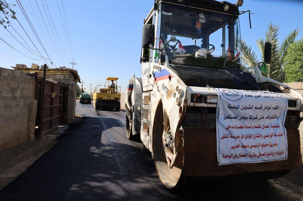 وقد شملت الأعمال تبليط طبقة البايندر بمساحة تصل إلى 50,000 م² في قرية 8، ومناطق النبع الصافي، والعمال، وطريق مجيلع الرئيسي ضمن ناحية الوحدة.