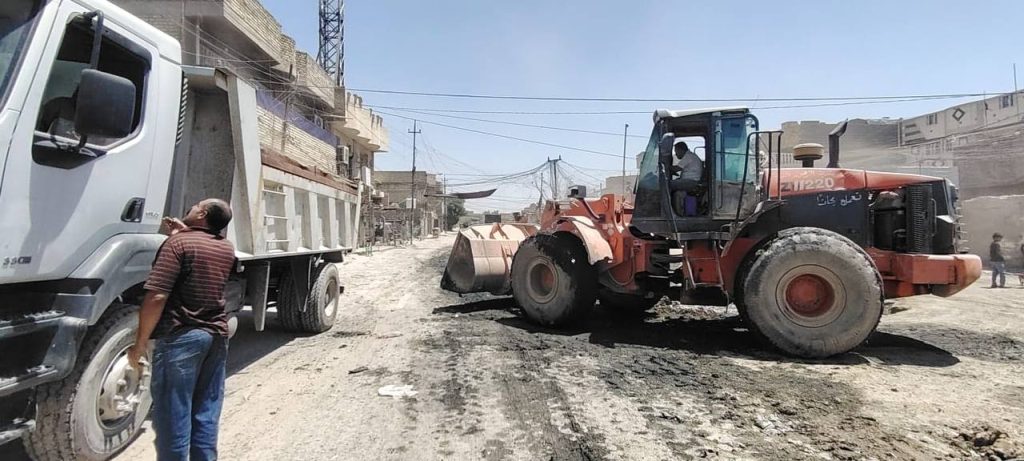 وتابع البيان “كما تضمنت الحملة تطهير وكري البزل المائي في المنطقة بالتعاون مع وزارة الموارد المائية، ومعالجة كسر في أحد الأنابيب الرئيسة الخاصة بماء الشرب، إلى جانب قص وتعديل الشارع الرئيسي للمنطقة”.