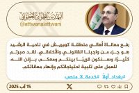 – قضاء الأعظمية: انطلاق حملة كبرى لتأهيل وتبليط المناطق الزراعية، ومنطقة الكريعات، ضمن مشروع تطوير البنى التحتية في القضاء.